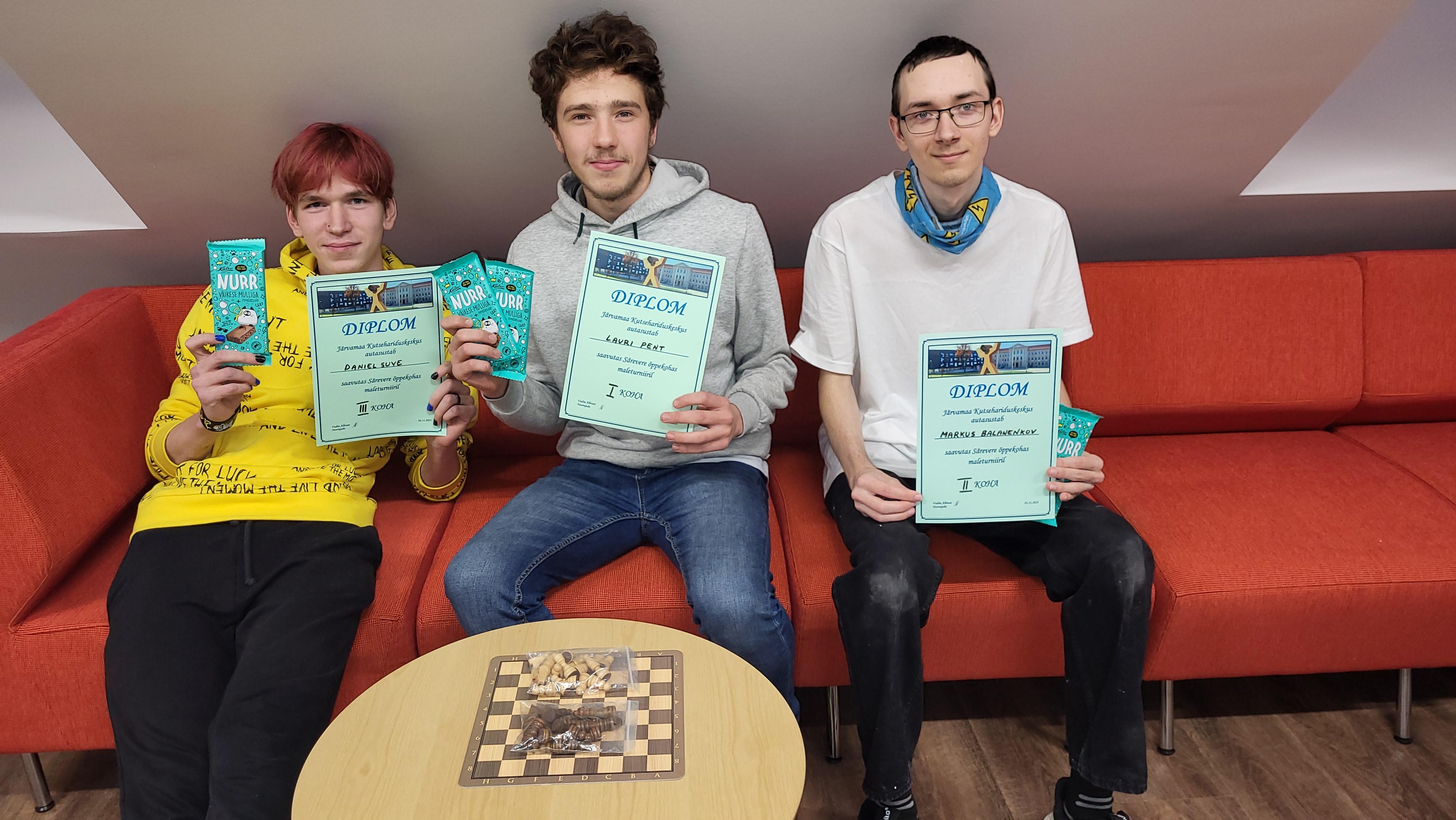 Täname osalejaid. Maleturniirist võtsid osa Andreas Malinin (IT-21), Cristopher Jaas (KO-21), Hans-Kert Kutsar (VK-23), Indrek Piil (KO-23), Jan Rääk (IT-23), Jevgeni Koronov (EL-22), Karl-Ramiel Dapon (KM-23), Kermo Veetõusme (EL-23), Kert Soom (EL-23), Sander Aleksejev (IT-23), Sten Markus Viibur (KM-23), Daniel Suve (AT-22), Lauri Pent (PM-23), Markus Balanenkov (EV-23) ning noortejuht Vadim Albrant.