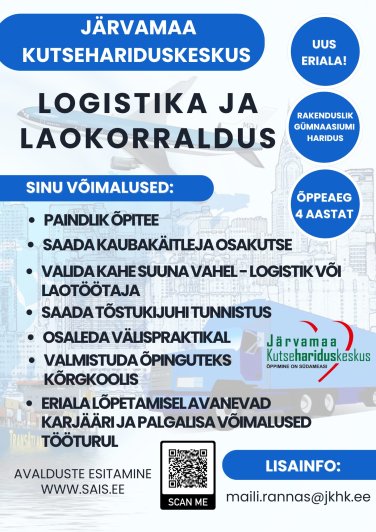 Peale 3,5 aastat saad olla töömaailmas logistiku assistent, laotöötaja, transpordikorraldaja, logistika klienditeenindaja.